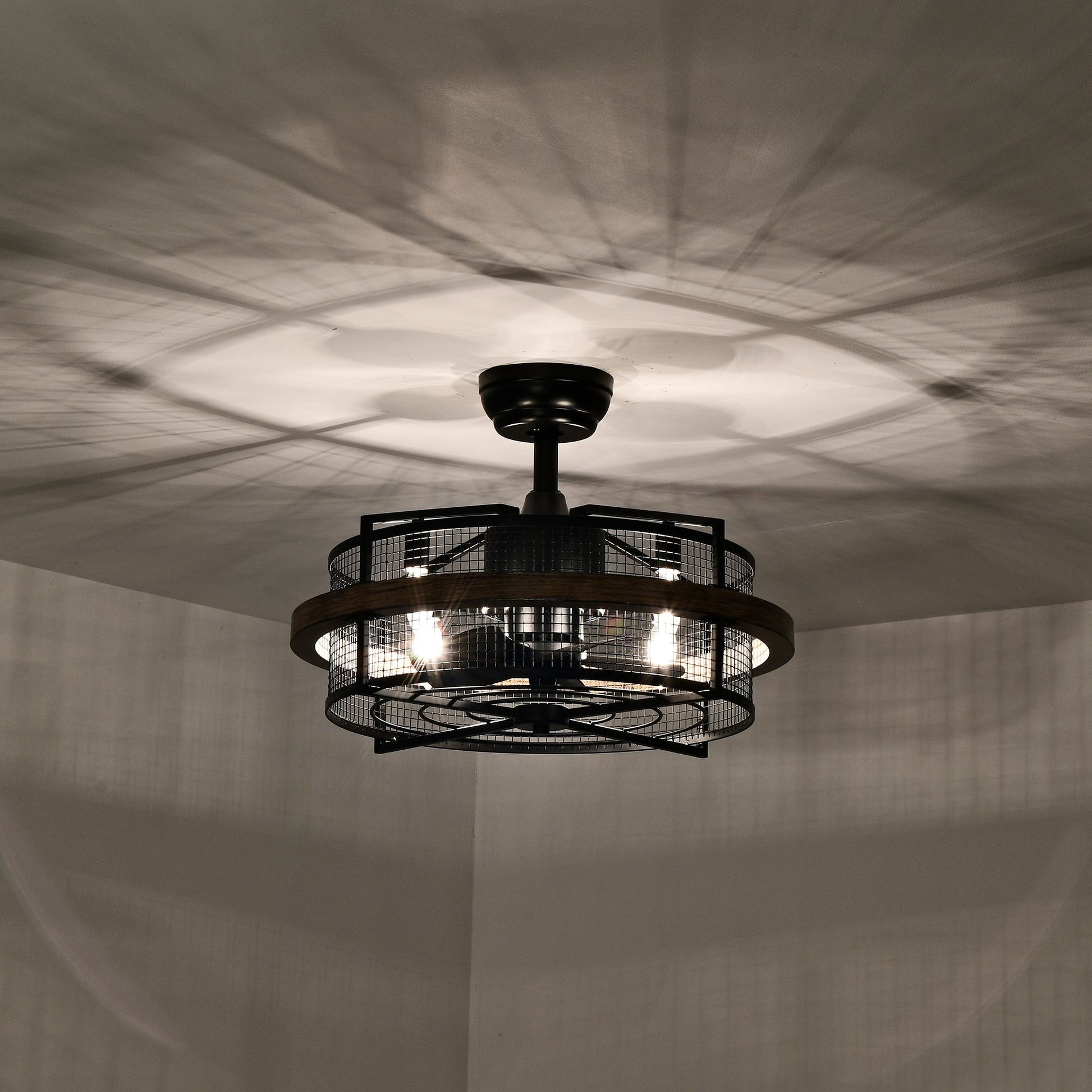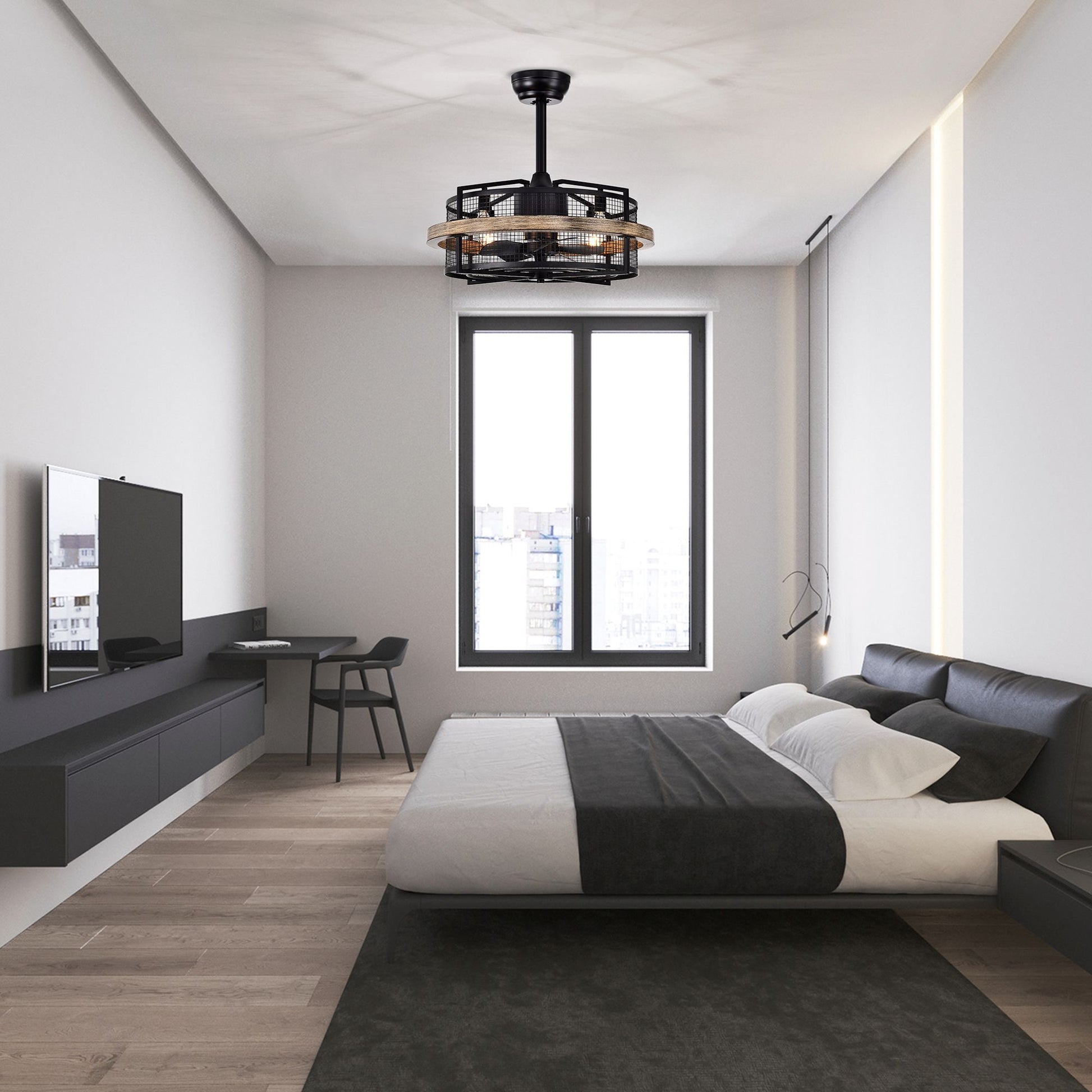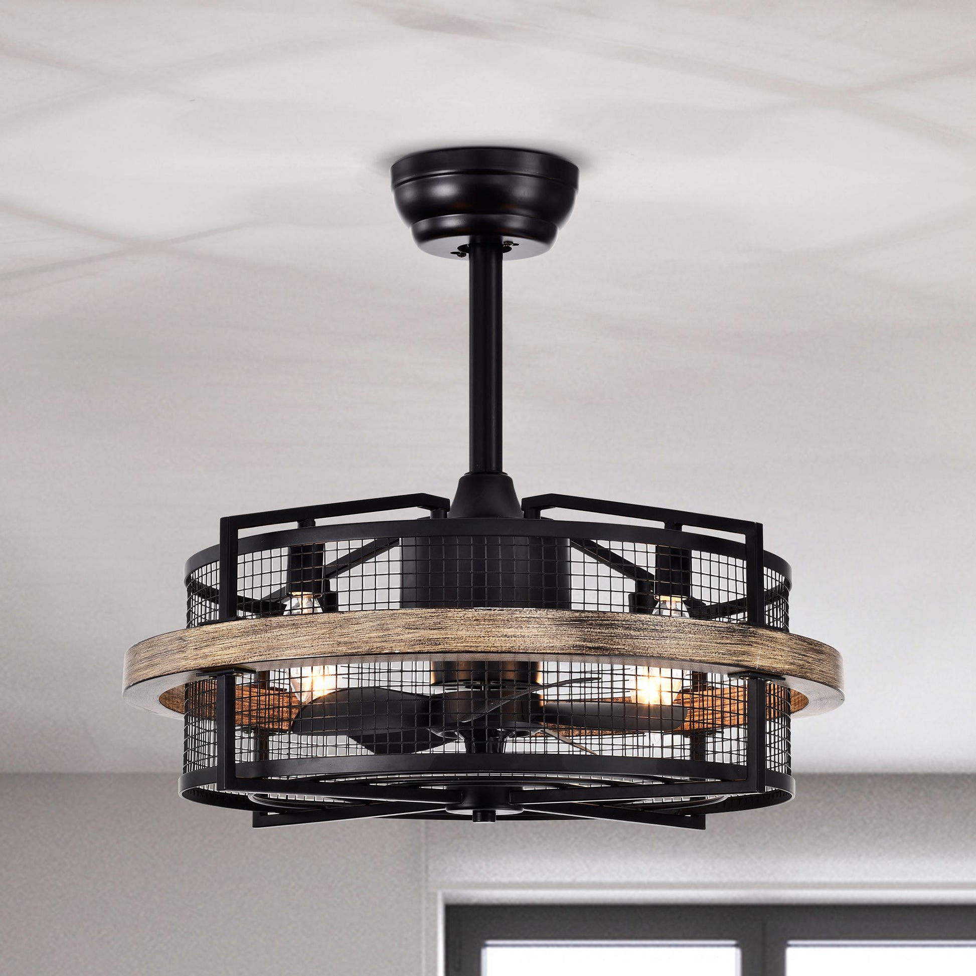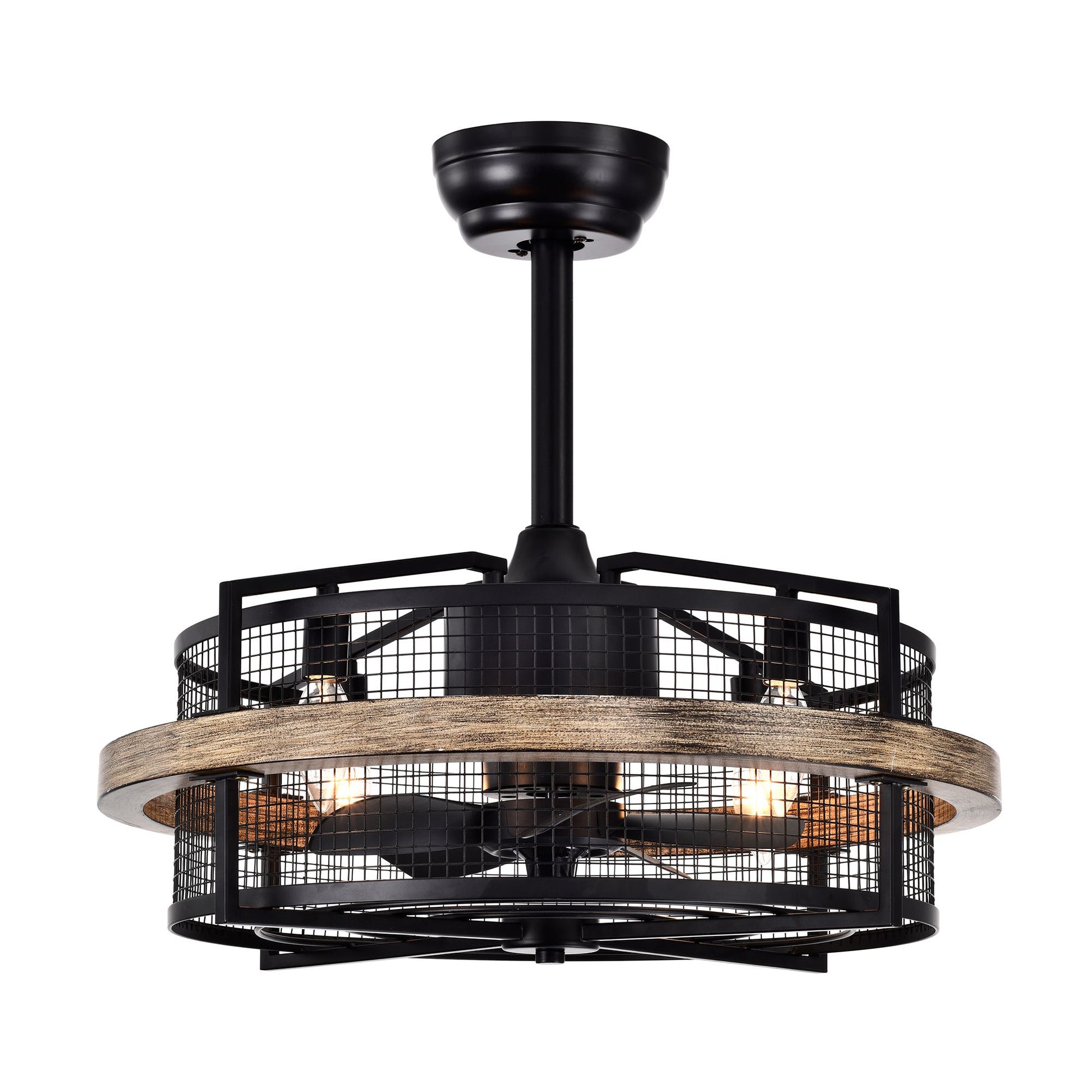 Elevate your home with the rustic charm of this 20" 5-blade fandelier ceiling fan with light. Blending farmhouse warmth with industrial style, it features a matte black openwork cage accented with faux wood for a touch of timeless character. Designed for kitchens, dining rooms, bedrooms, or foyers, this statement piece adds cozy elegance to any space.