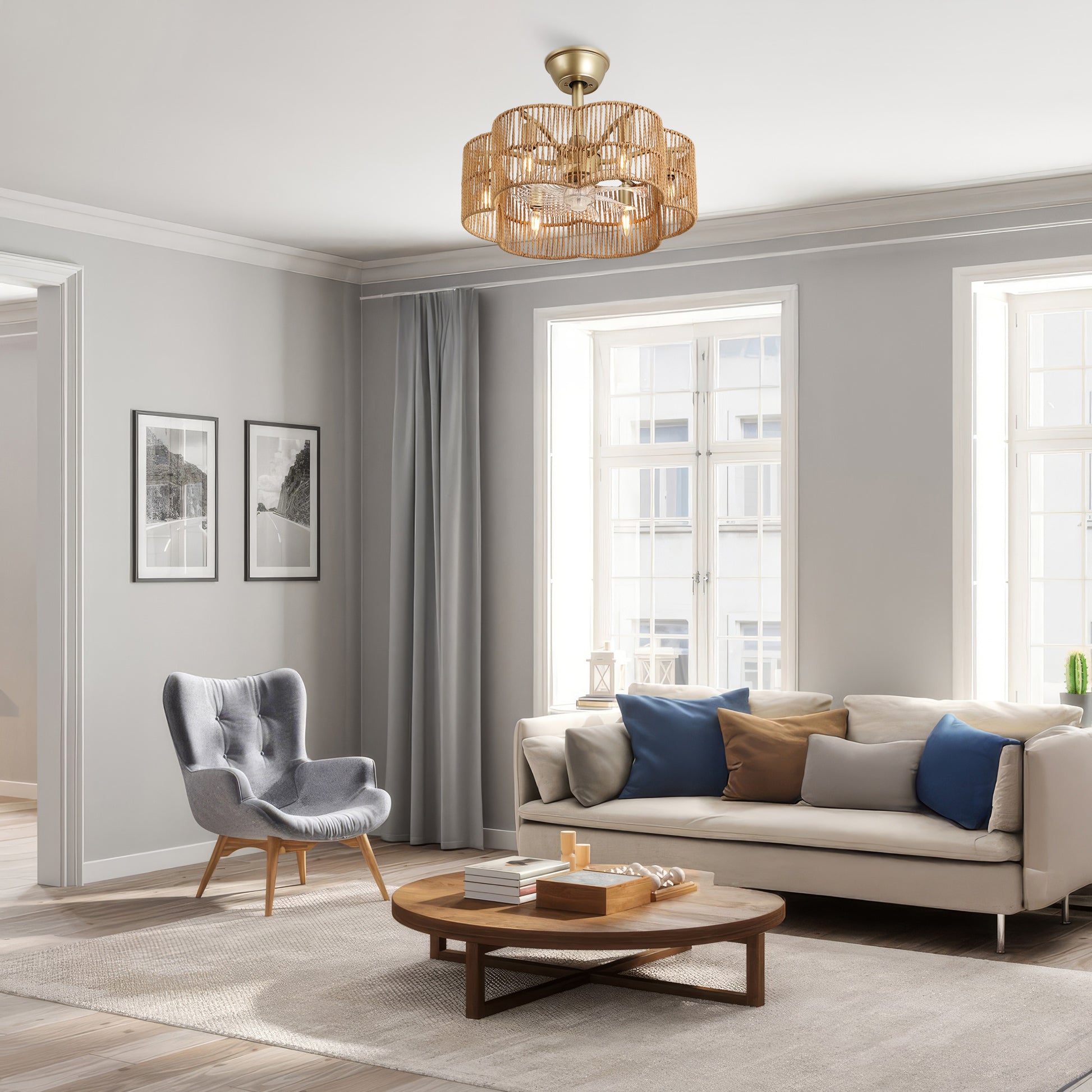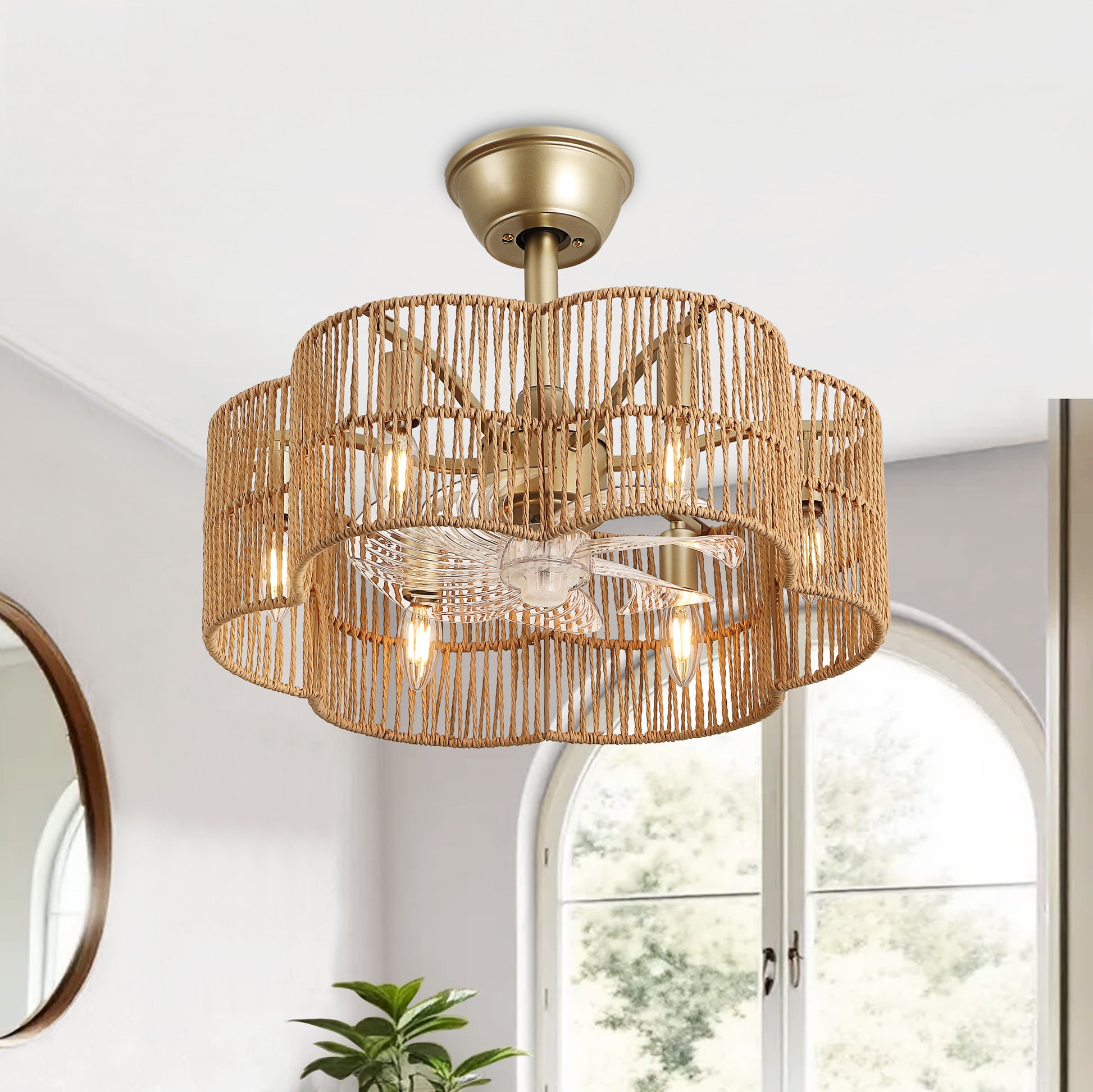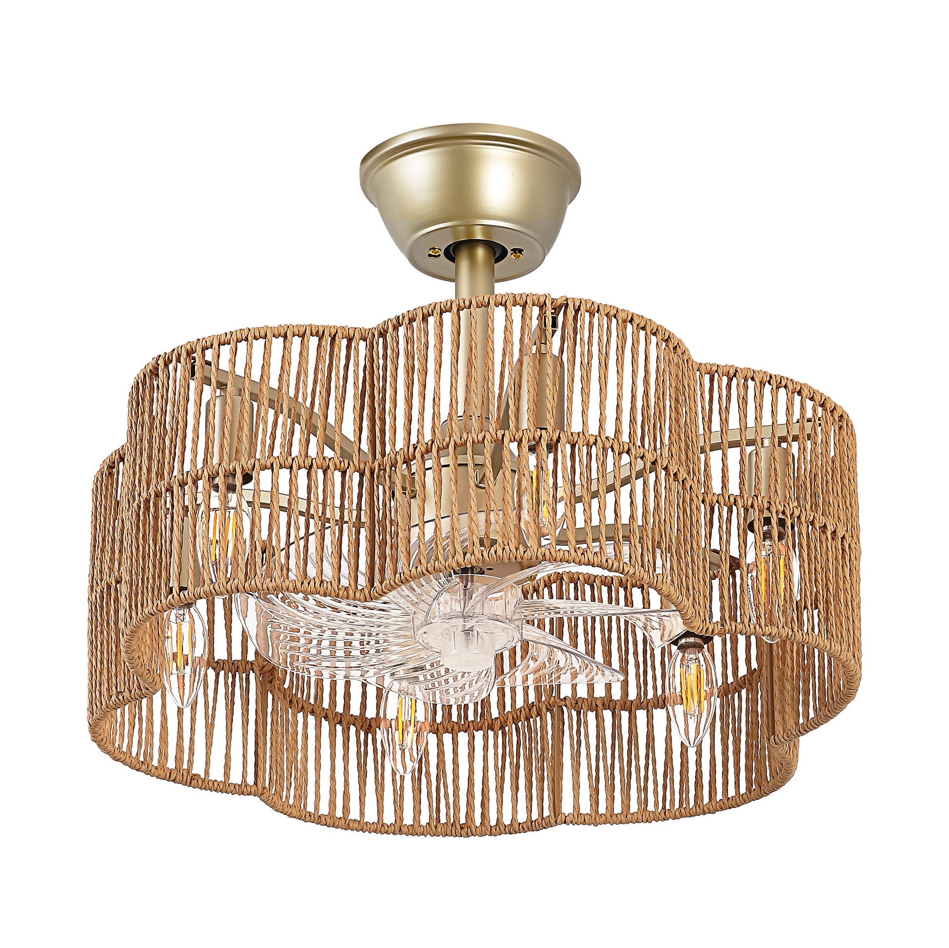 Ceiling Fan 20" 7-Blade 6-Light Modern Gold Brown Fandelier