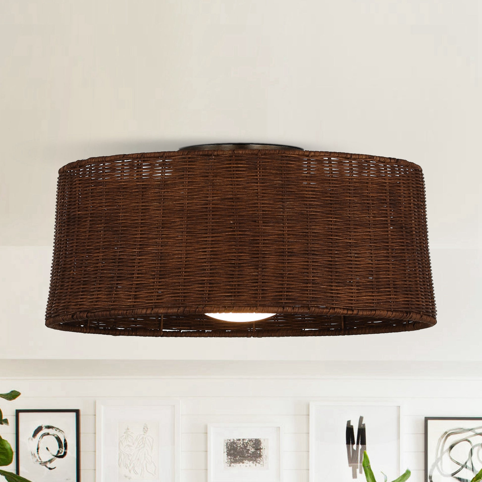 Bring rustic elegance and modern comfort to your home with this 21" woven farmhouse ceiling fan with LED light. Designed with an intricate rattan drum shade and a rich bronze finish, this flush-mount fandelier creates a warm, inviting atmosphere in bedrooms, living rooms, or cozy dining areas. The bladeless design enhances its farmhouse charm while ensuring safe, quiet operation—perfect for low ceilings and intimate spaces.