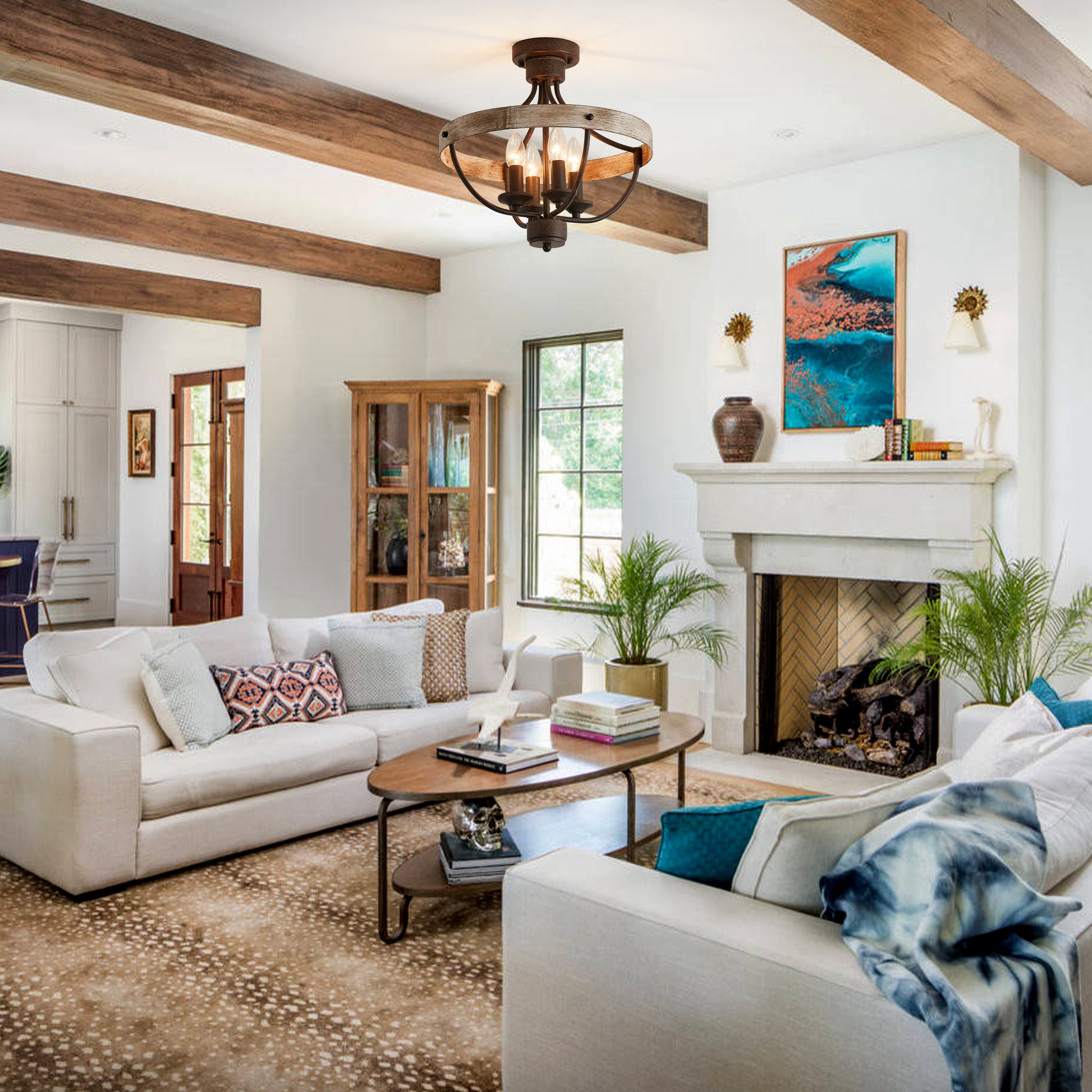 4-Light Industrial Farmhouse Semi-Flush Mount Ceiling Light
