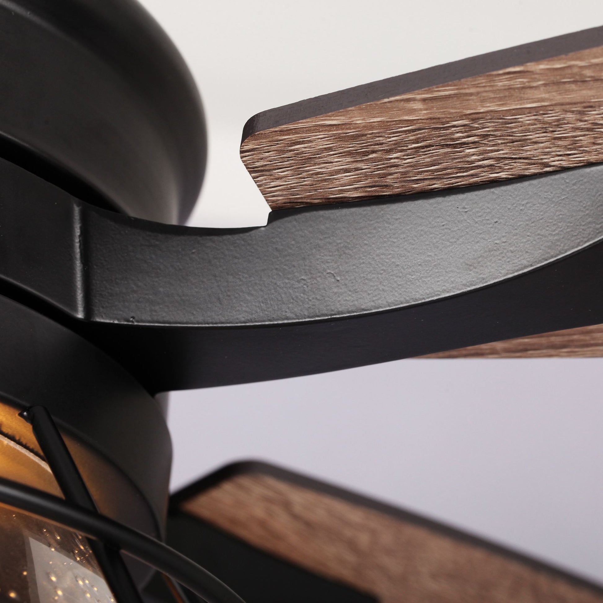 Drift into a realm of timeless romance with the Antone 52 in. ceiling fan, where the delicate shimmer of seeded glass entwines with the rugged beauty of vintage woodwork and sleek black accents. Its industrial black finish motor, paired with five weathered oak blades, weaves a tapestry of modern elegance and rustic charm, casting a spell of sophistication over your living space. The industrial light kit, aglow with two vintage-style LED bulbs, bathes your room in a warm, intimate light, setting a focal mood that whispers of cozy evenings and heartfelt moments. With a handheld remote effortlessly controlling speed, on/off, and timer functions, this fan stirs gentle breezes and radiant allure, transforming your home into a sanctuary where love and style forever intertwine.