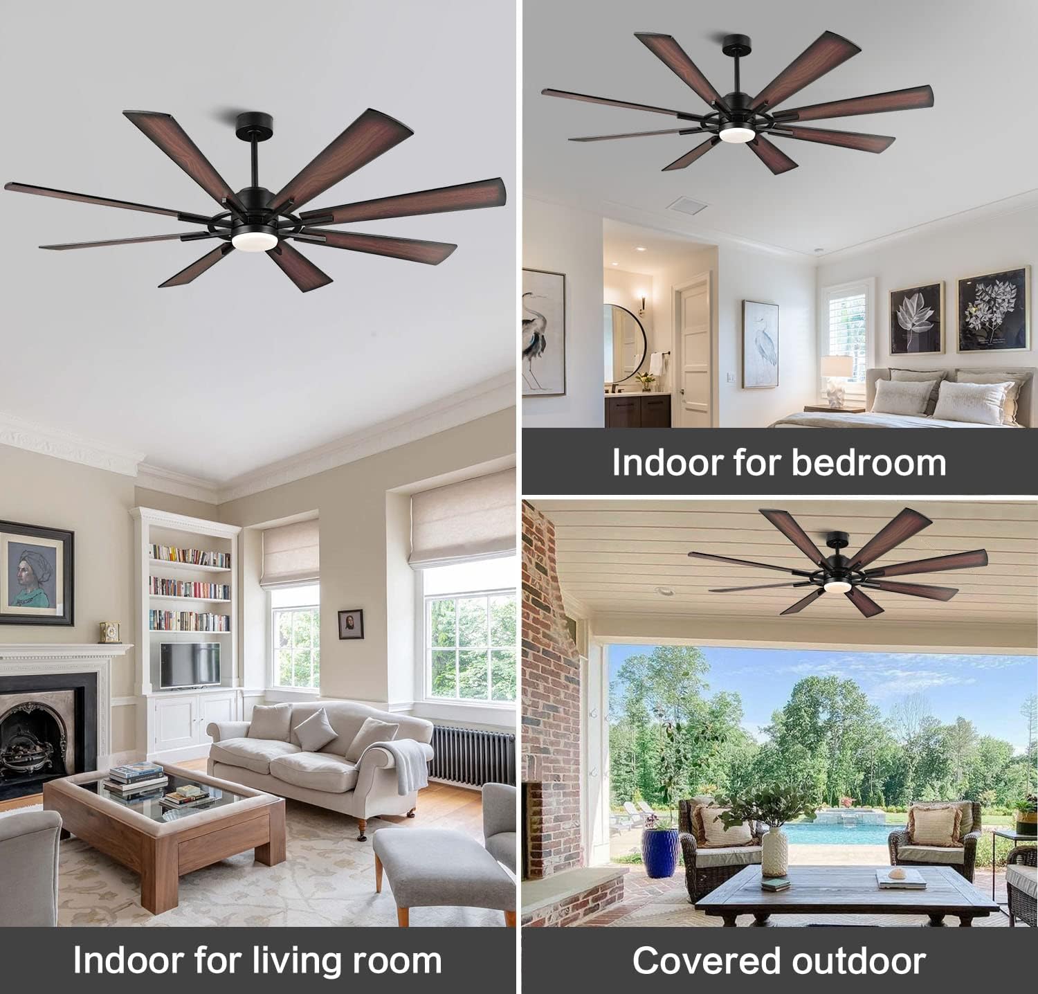 '- DESIGN: This 60-inch indoor ceiling fan has 8 powerful blades to make your home more comfortable; It offers a sleek, minimalist design that blends into any modern environment. With shapely, carved wood blades, this large ceiling fan offers an ideal blend of style and function.