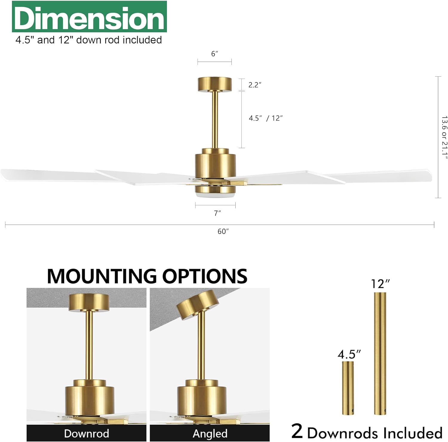 AeroBlade 60" 8-Blade 6-Speed White & Gold Ceiling Fan with Light