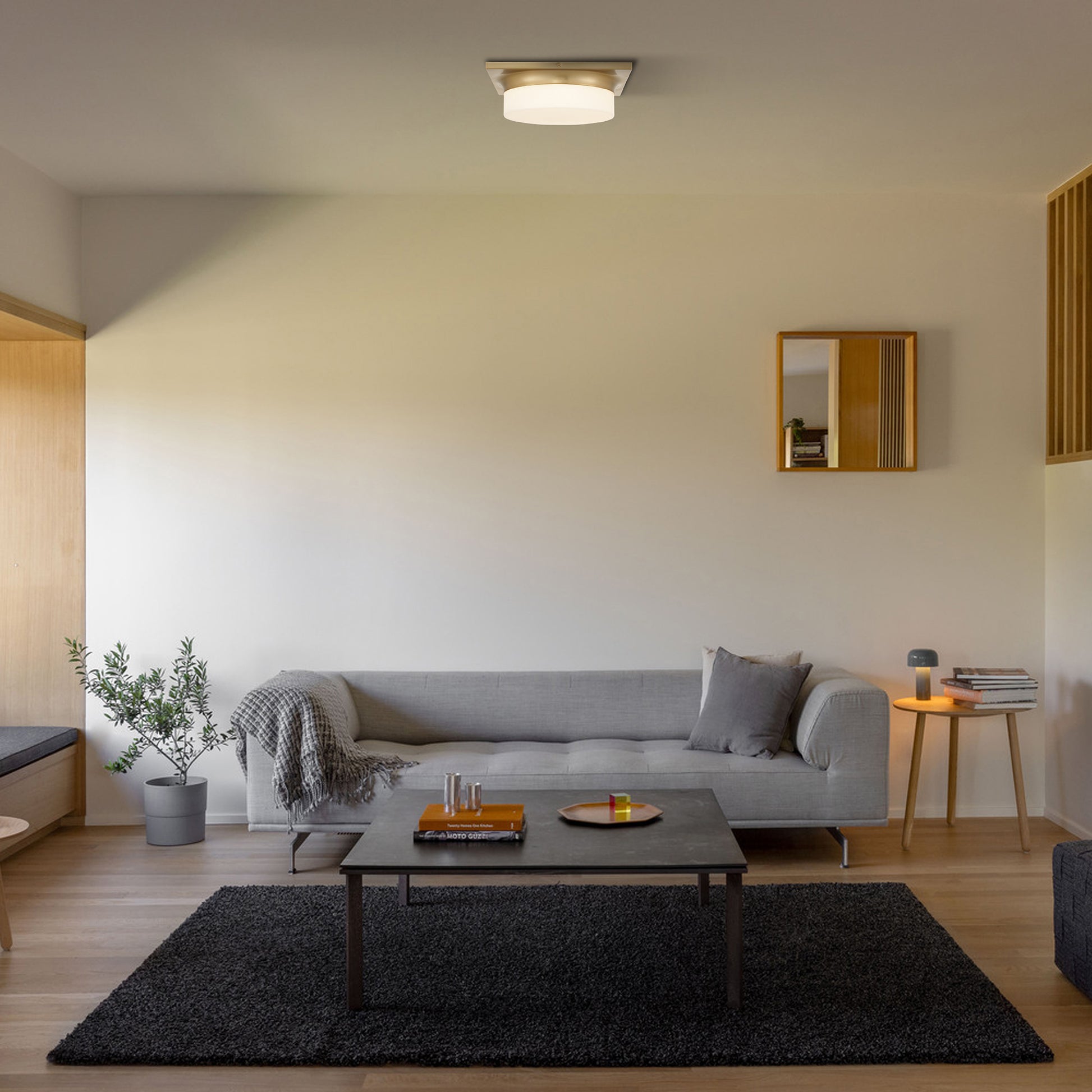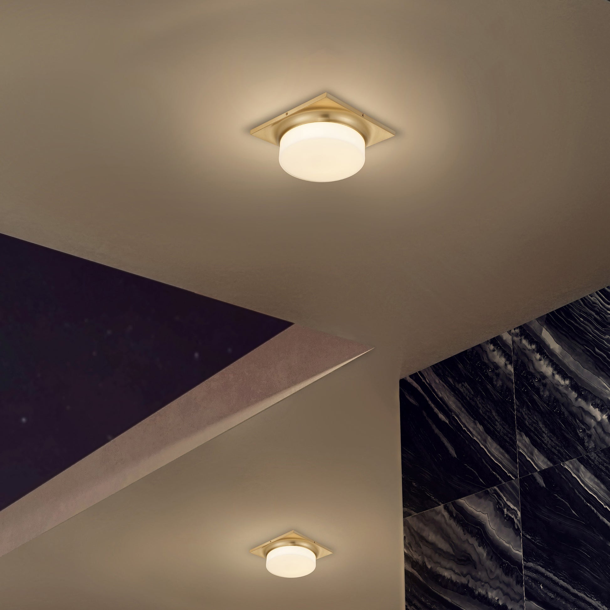 Arua Collection is harmonious blend of modern simplicity and metropolitan elegance. This low-profile ceiling fixture marries clean lines with understated luxury. The crisp white opal glass drum shade diffuses a soft, inviting glow, while the geometric square backplate adds a touch of structured modernity—perfect for elevating any space with refined, cosmopolitan flair.