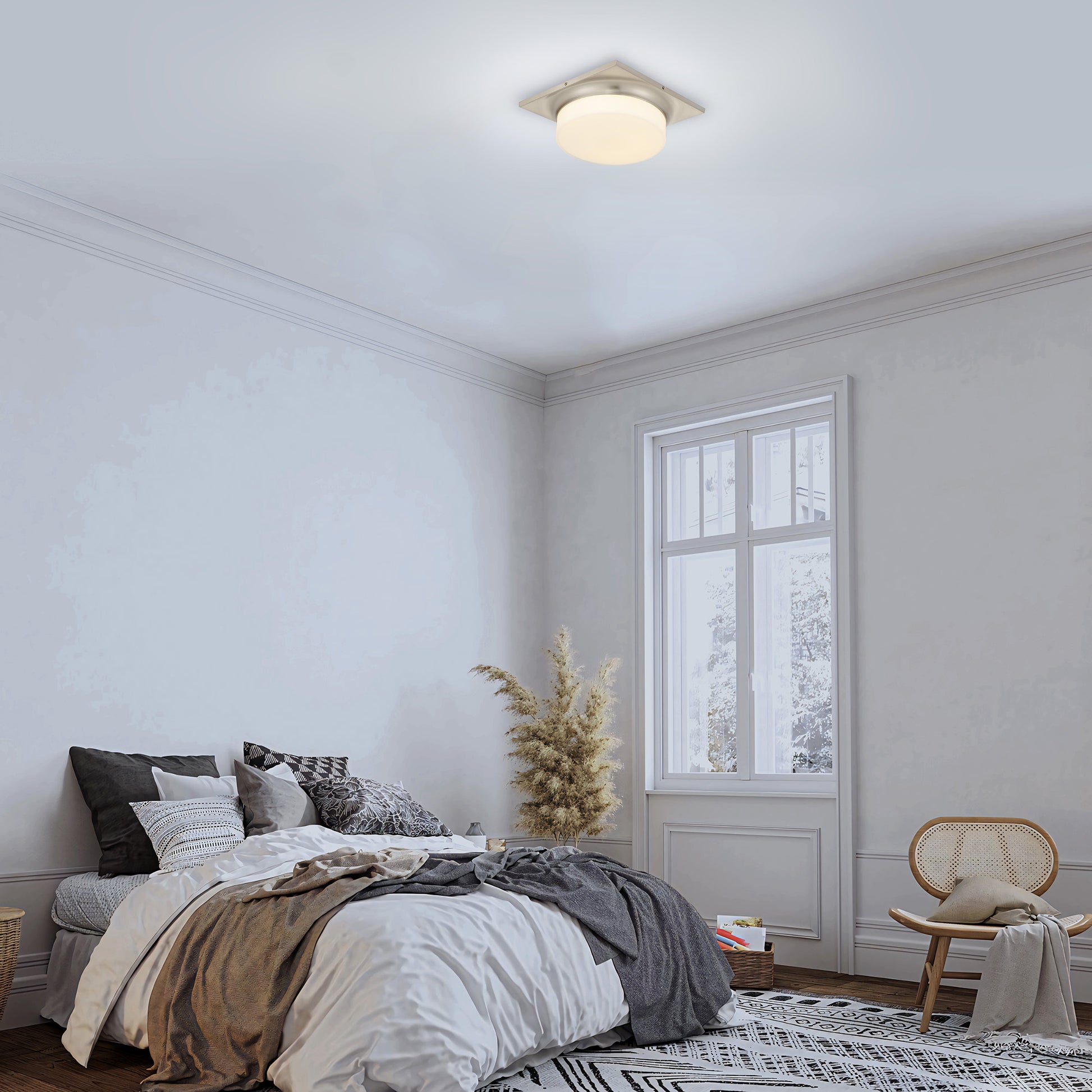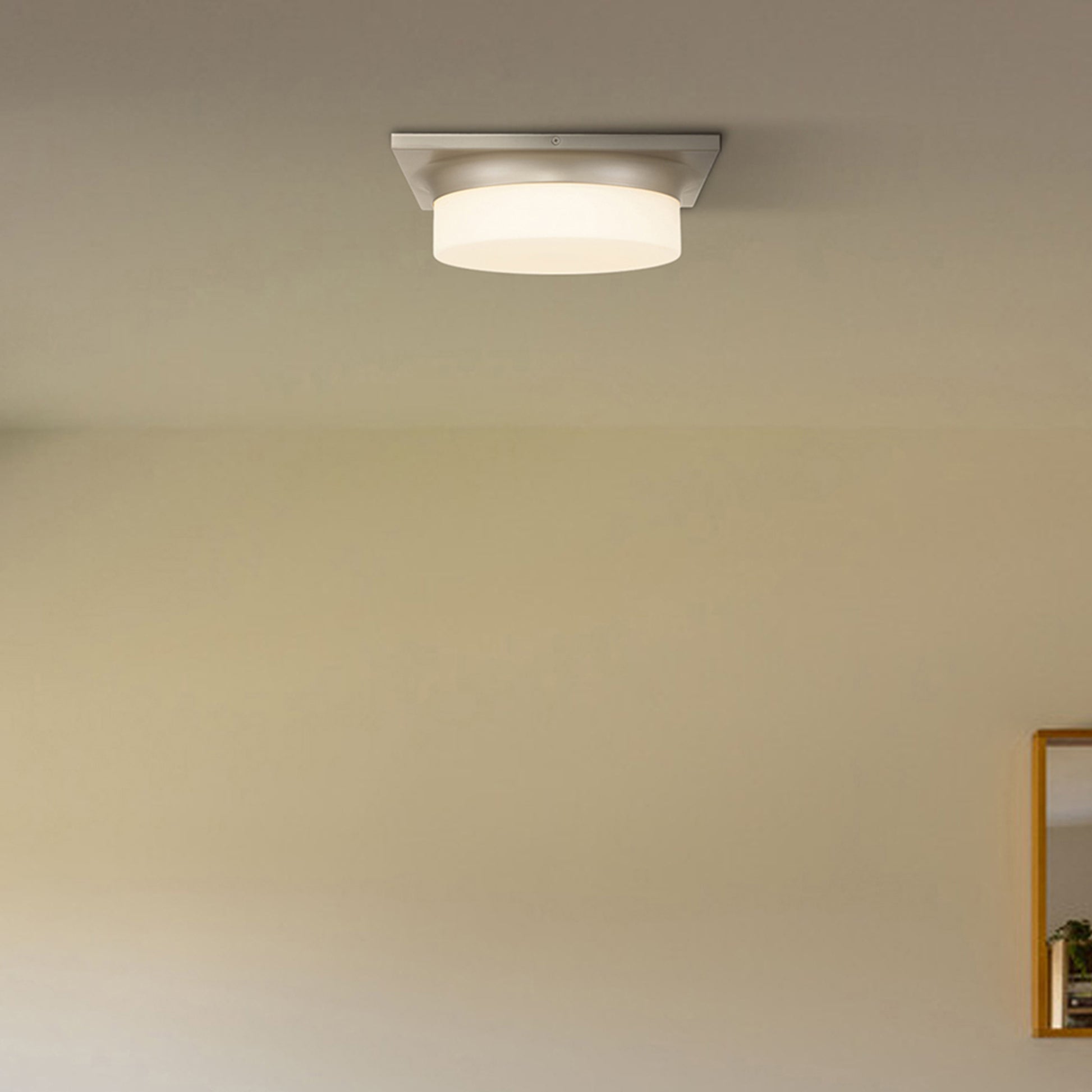 Arua Collection is harmonious blend of modern simplicity and metropolitan elegance. This low-profile ceiling fixture marries clean lines with understated luxury. The crisp white opal glass drum shade diffuses a soft, inviting glow, while the geometric square backplate adds a touch of structured modernity—perfect for elevating any space with refined, cosmopolitan flair.