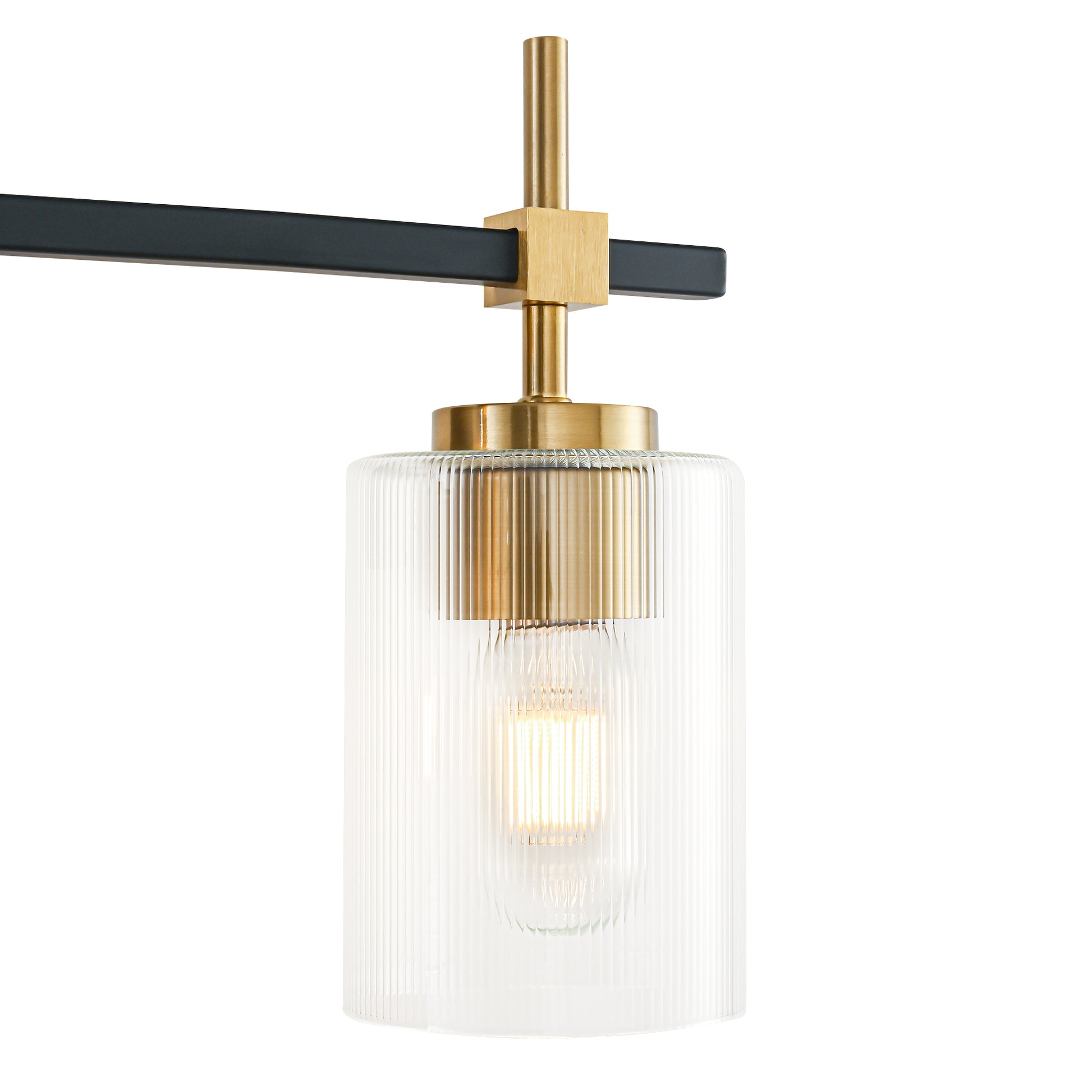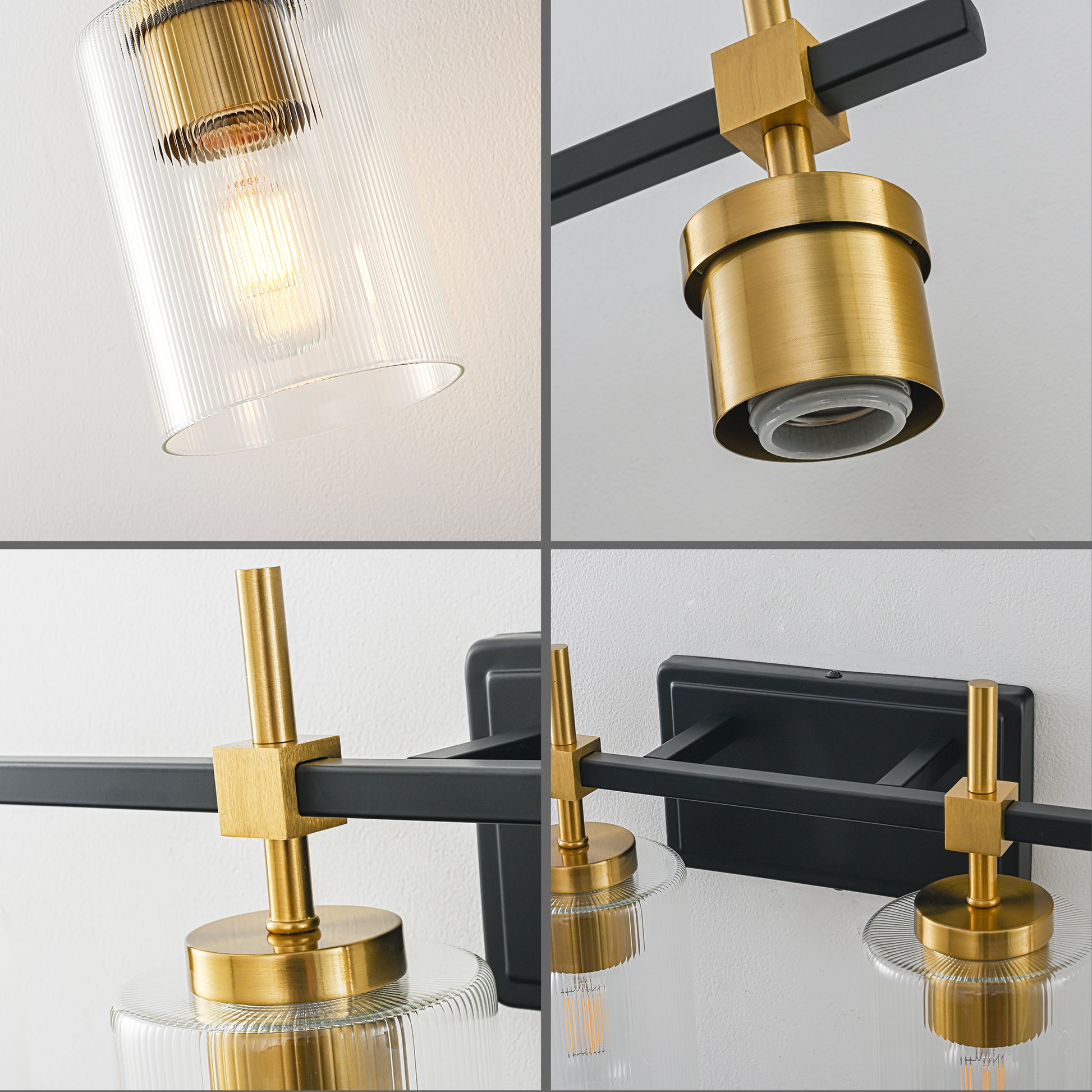 4-Light Black & Gold Vanity Light – Modern Bathroom Wall Light with Ribbed Glass