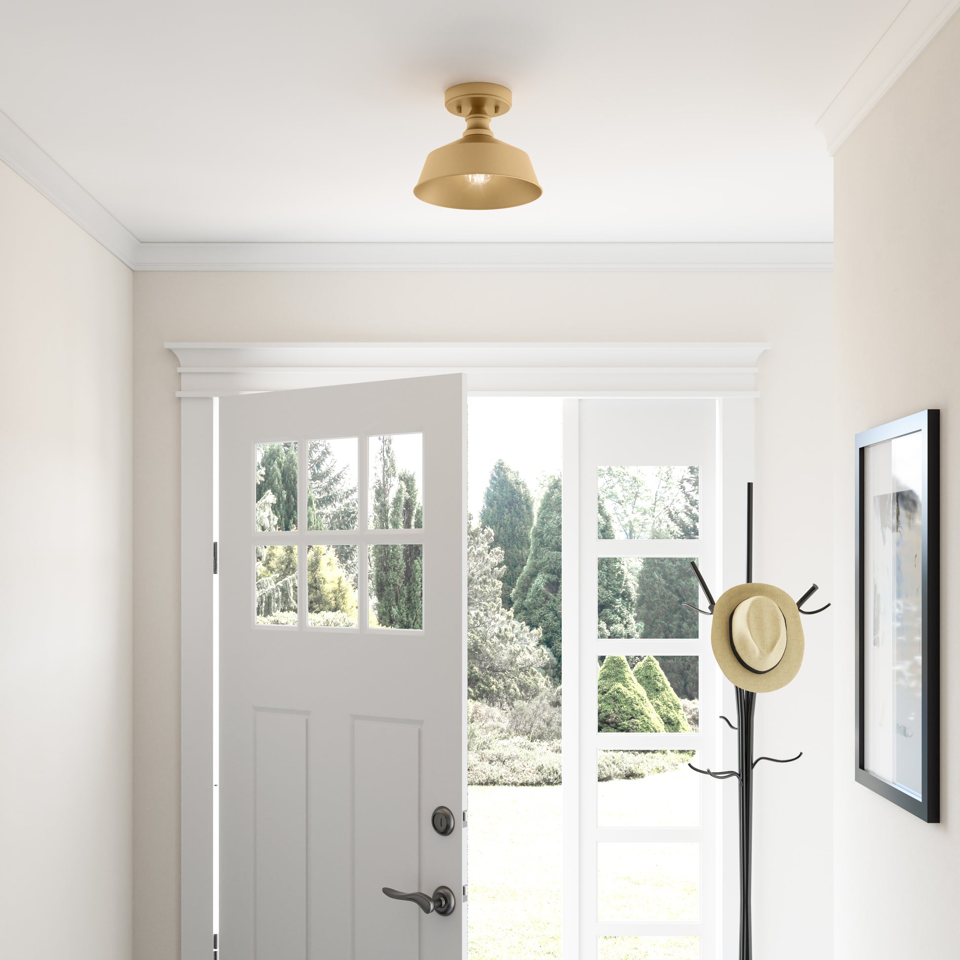 The Bola 10-inch ceiling light with a farmhouse design and brass finish is a perfect option for those who want to add a touch of rustic charm to their home decor. With its simple yet striking design, a single light semi-flush mount with a farmhouse style is a great way to add a touch of warmth and character to any space.