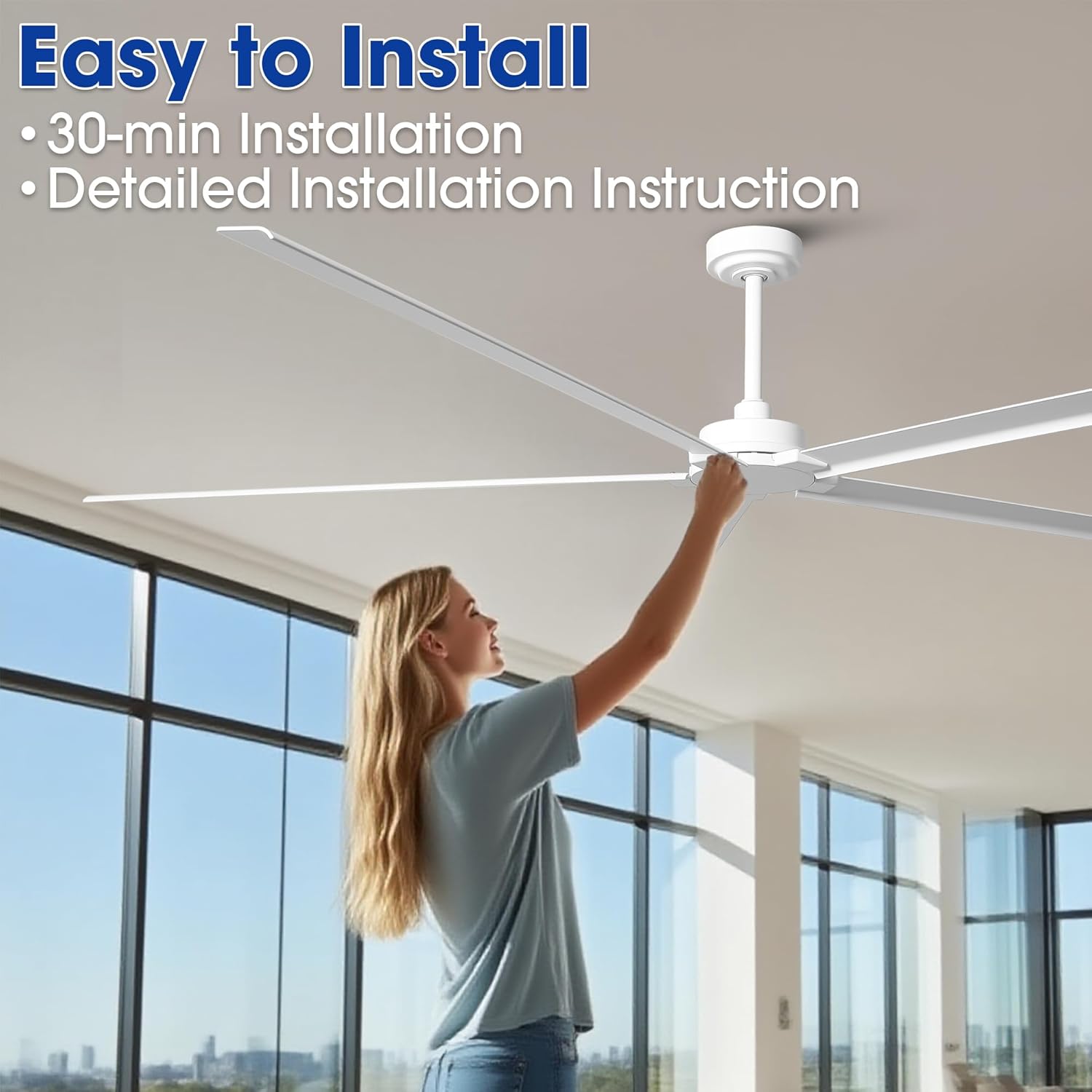 Stay cool in style with this Ceiling Fan featuring an 84-inch aluminum frame, 5-blade industrial design, and sleek white finish. Perfect for large indoor or covered outdoor spaces, this modern industrial ceiling fan combines durability, quiet performance, and energy efficiency for year-round comfort.