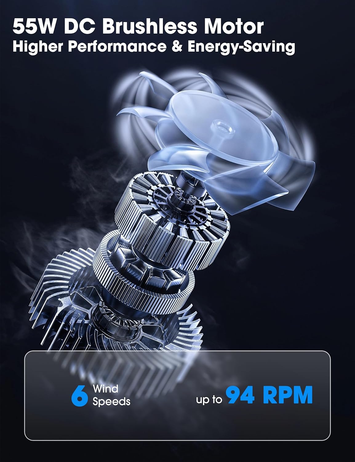 - Motor: 55W reversible DC motor for efficient, quiet performance (≈45 dB)