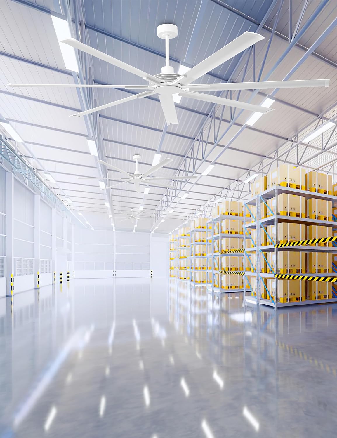 Enjoy powerful, quiet comfort with this Ceiling Fan featuring an 84" modern industrial design, 7 white metal blades, and a high-efficiency reversible DC motor. Perfect for large indoor or covered outdoor spaces, this fan combines minimalist style with exceptional airflow and whisper-quiet operation.