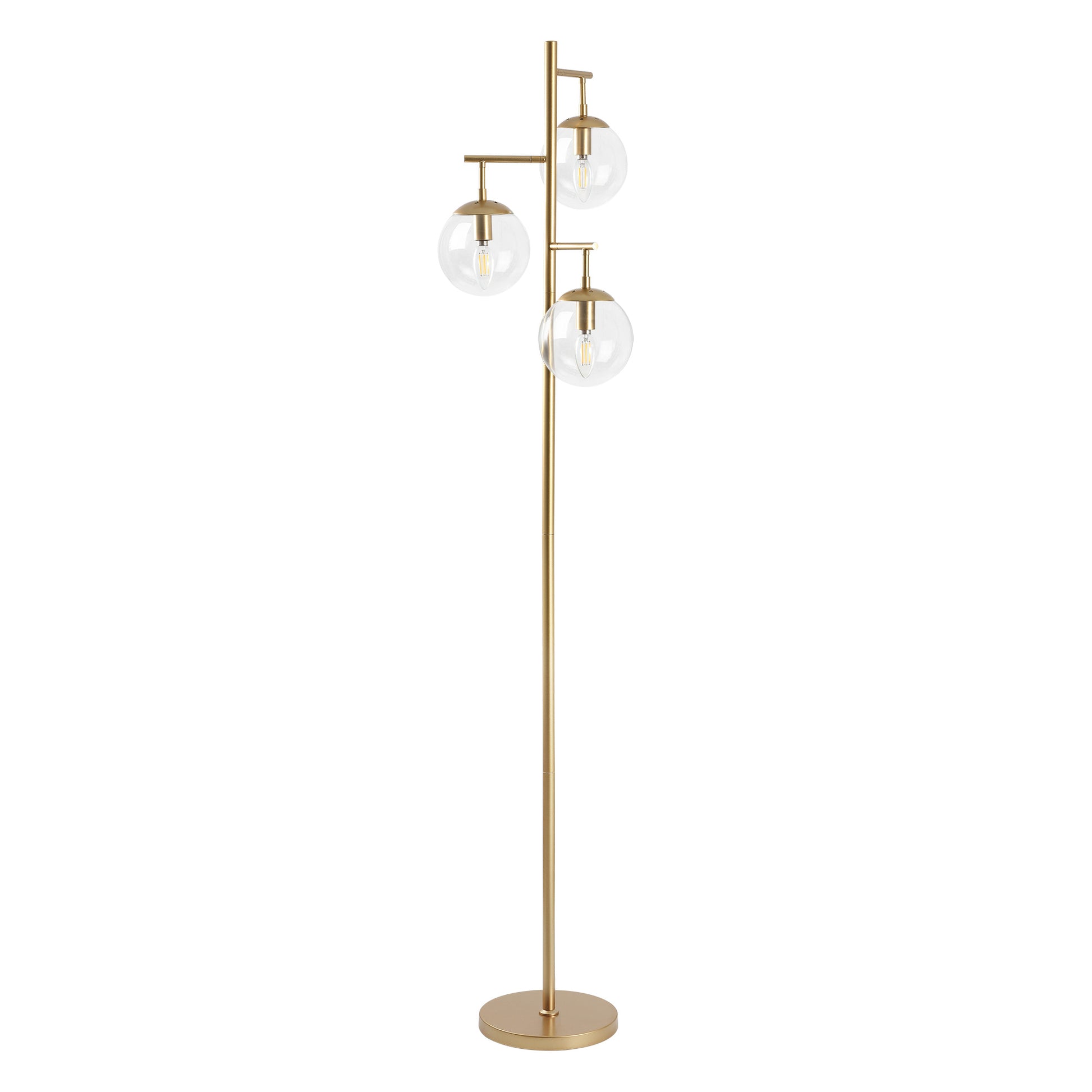 Brighten your space with this Floor Lamp featuring a modern brass finish, three clear glass globe shades, and a 70-inch slender frame. The elegant design blends seamlessly with modern, contemporary, or minimalist décor, adding warmth and sophistication to any room.