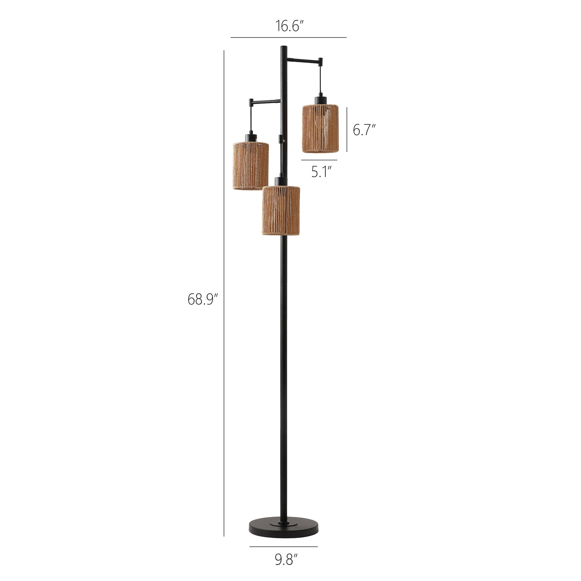 Floor Lamp Traditional Black 69" 3-Light Hemp Shades
