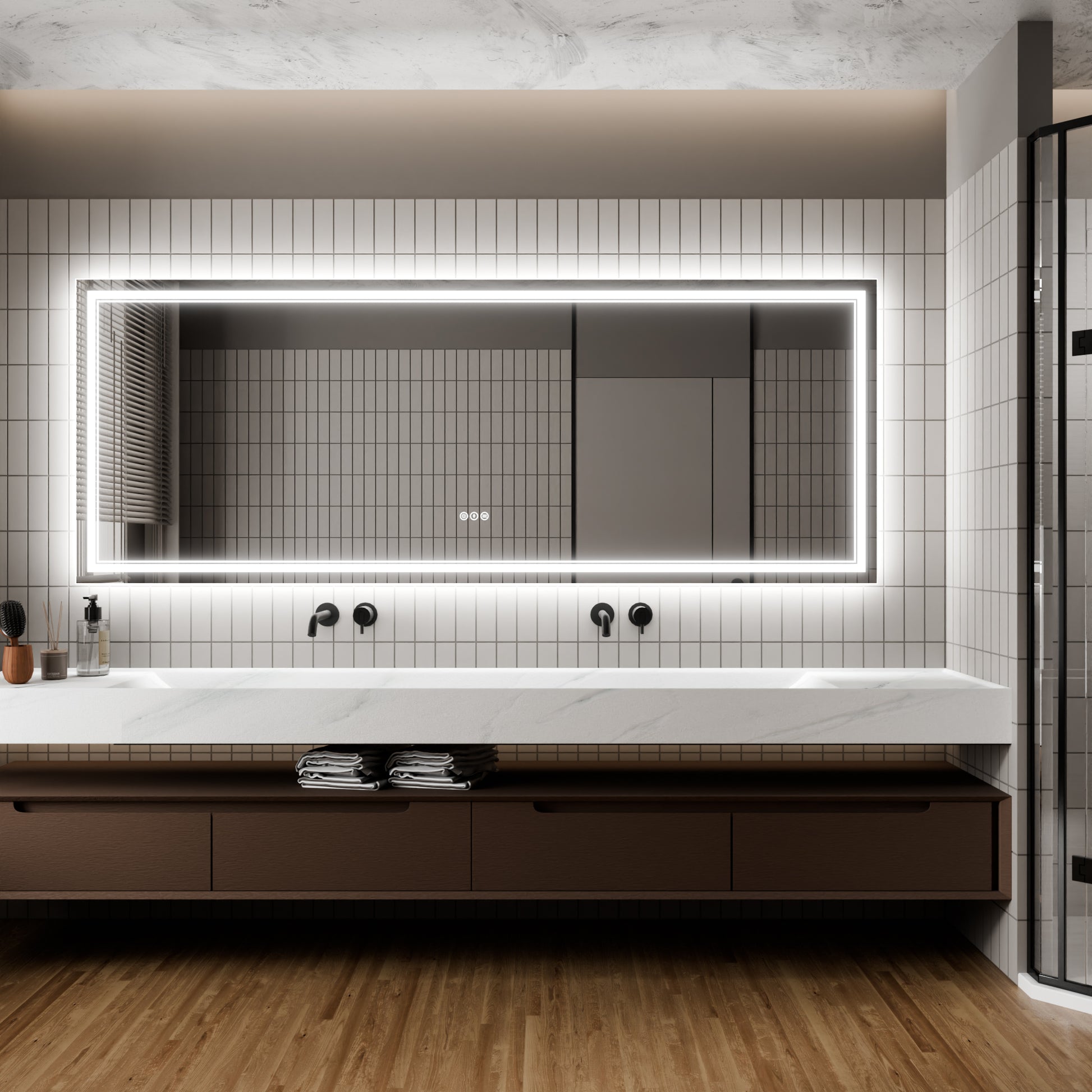 - Anti-fog - Defogger is separately controlled by a 2nd touch switch. Turn it on/off according to your needs. Low power consumption, safe, and energy efficient.