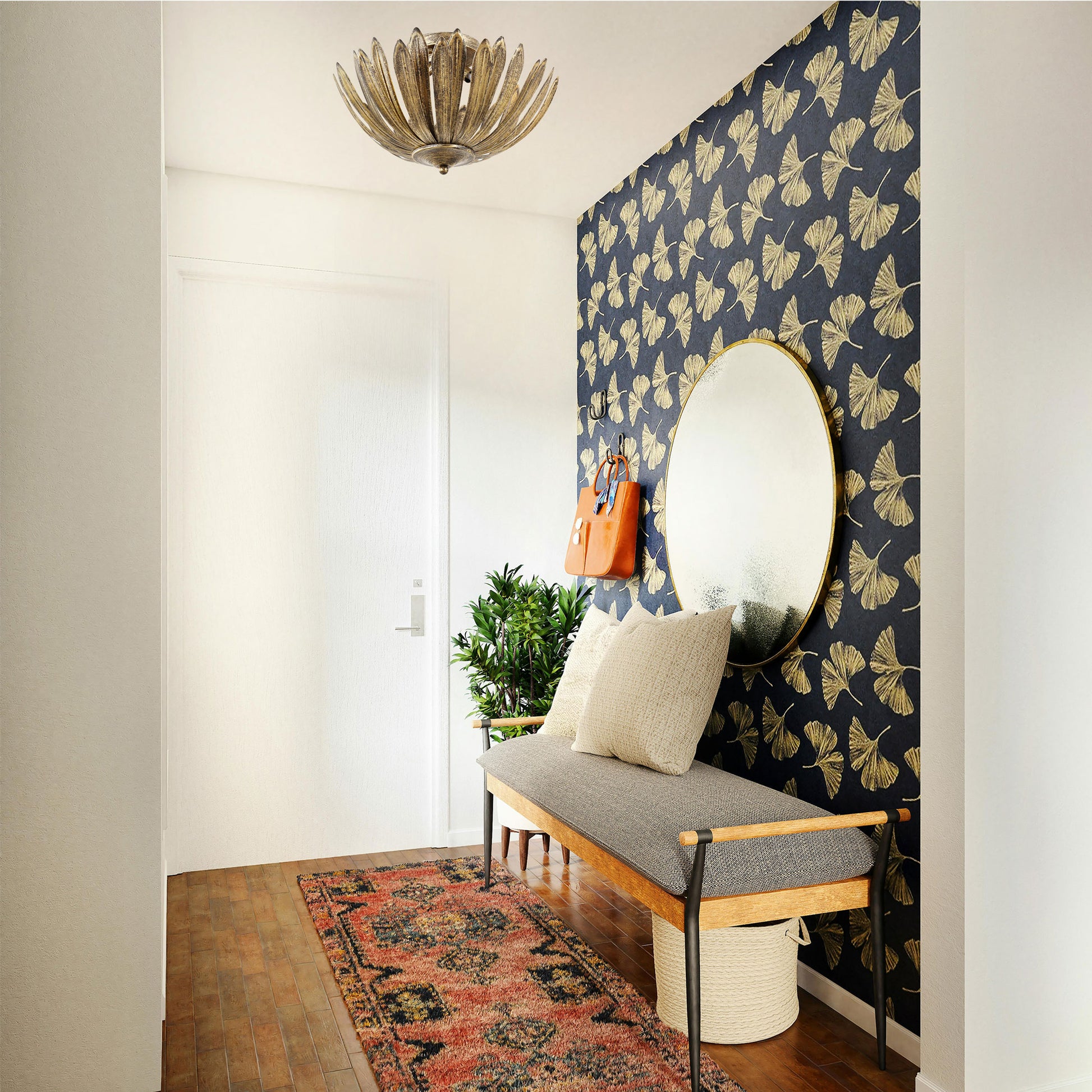 Add timeless charm and a subtle touch of luxury to your home with this hand-painted gold semi-flush mount — where artistry meets illumination.