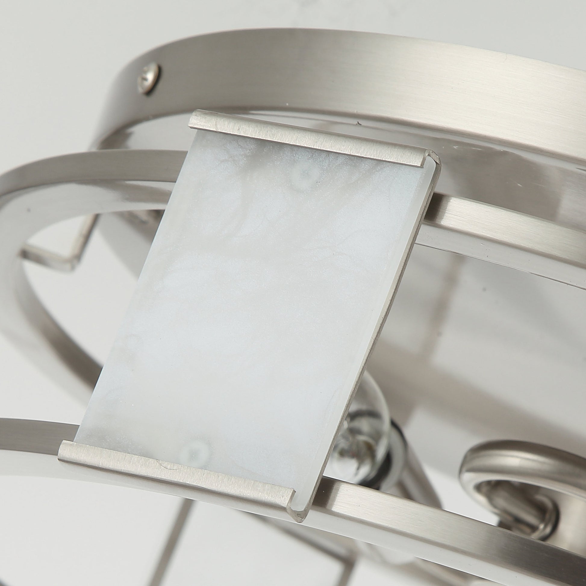 The Modern 15 in. 3-Light Stain Nickel Flush Mount Ceiling Light is the perfect addition to any room in your home. The fixture features a modern classic style with a cage-style design that complements any decor. The flush mount design is perfect for low ceilings, making it an ideal lighting solution for bedrooms, hallways and other areas of your home.