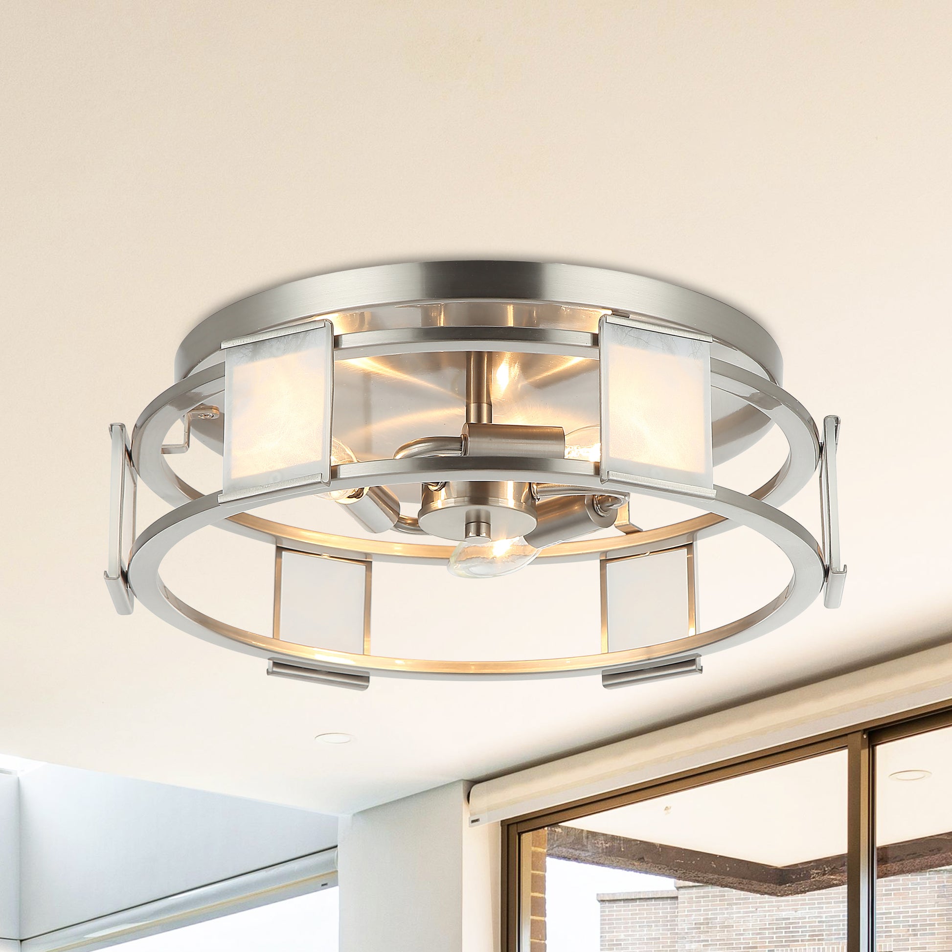 Lusteria 15" Modern Satin Nickel 3-Light Flush Mount Ceiling Light