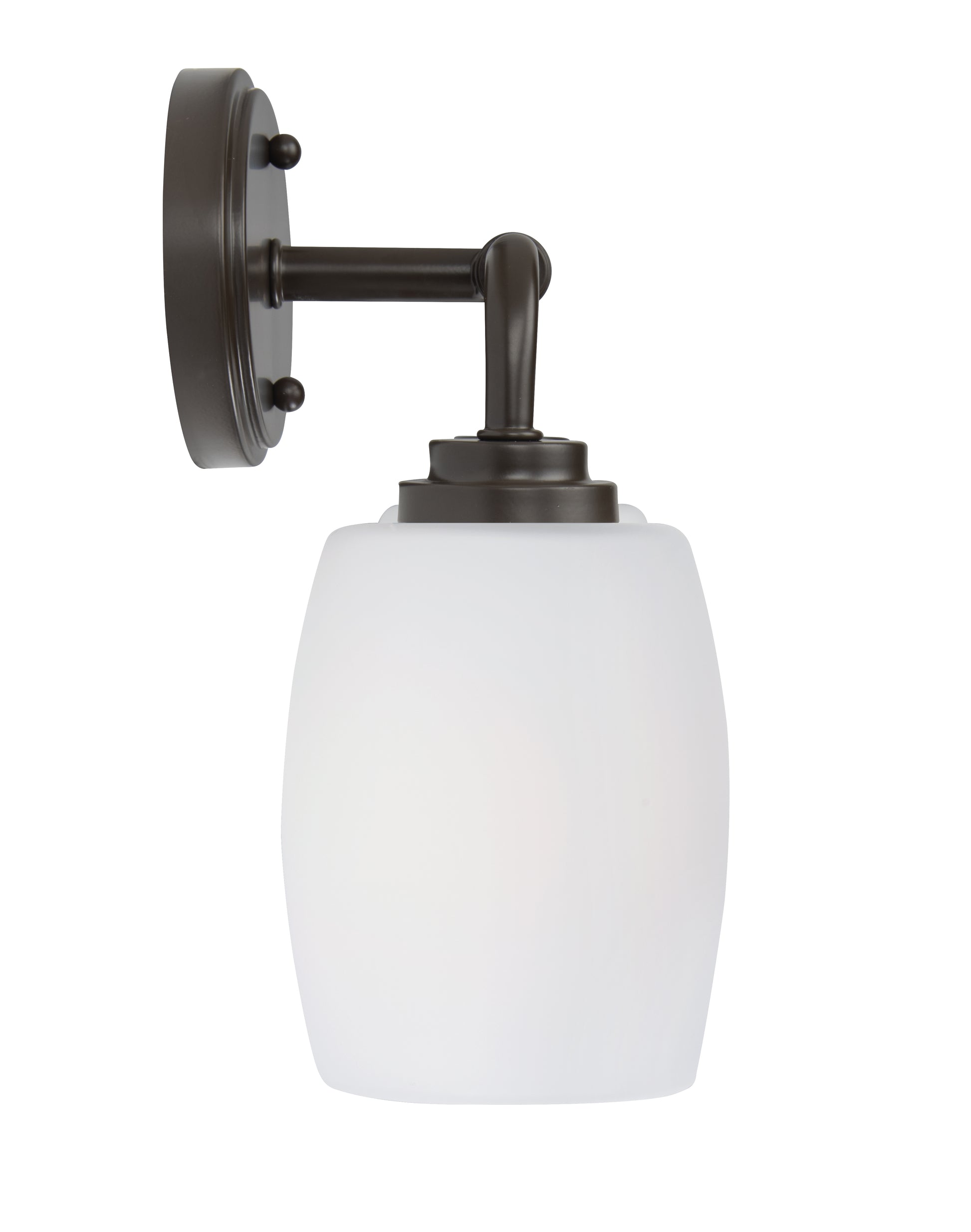 Black, 2-light vanity light displays a classic look for the vanity. The backplate connects to one sleek arm that can easily be mounted up or down thanks to its reversible feature. Two white glass cups enclose two medium-base bulbs up to 60W, which is not "&"included. This vanity light is compatible with a dimmer switch (not included), so you can adjust the lighting strength.