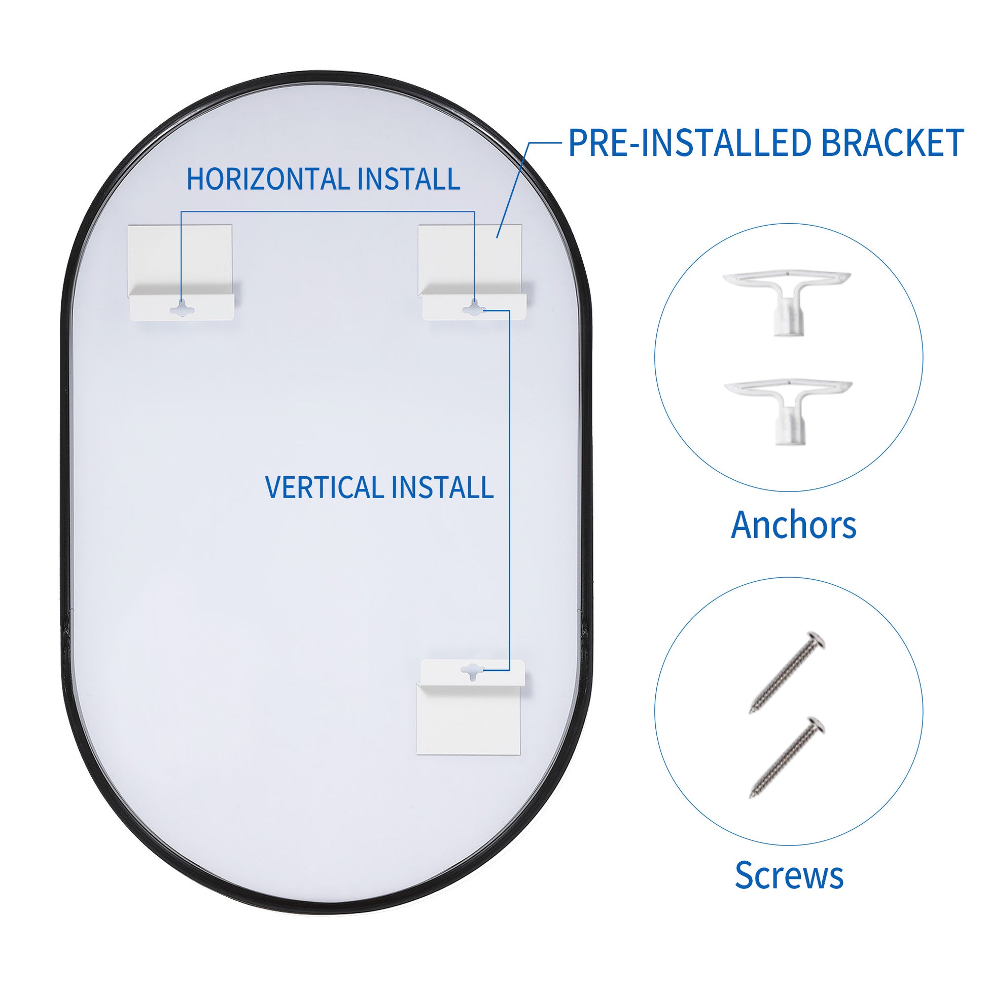 Transform your bathroom with this elegant oval black bathroom mirror, a timeless piece that exudes modern sophistication. Featuring a sleek matte black metal frame and a distinctive pill-shaped oval design, this wall-mounted vanity mirror softens the space while adding a contemporary touch. The generous reflective surface bounces natural light, making any bathroom feel brighter and more spacious. Perfect for minimalist, modern, or transitional decor, it pairs beautifully with vessel sinks, matte black faucets, neutral walls, and lush green plants. Moisture-resistant and built to last, it's easy to install above any vanity. Search for "oval black bathroom mirror" or "pill oval vanity mirror black" to bring refined style to your daily routine.