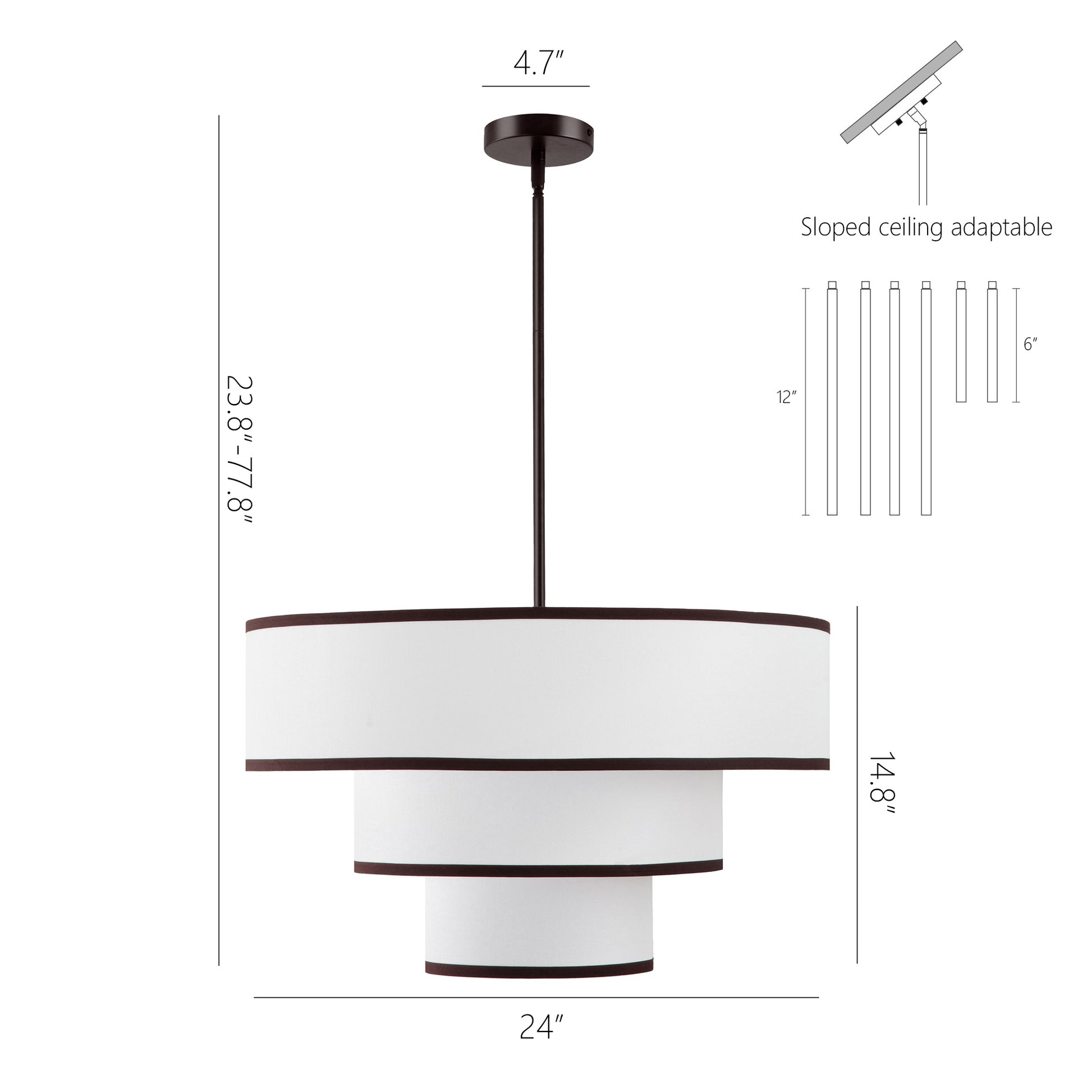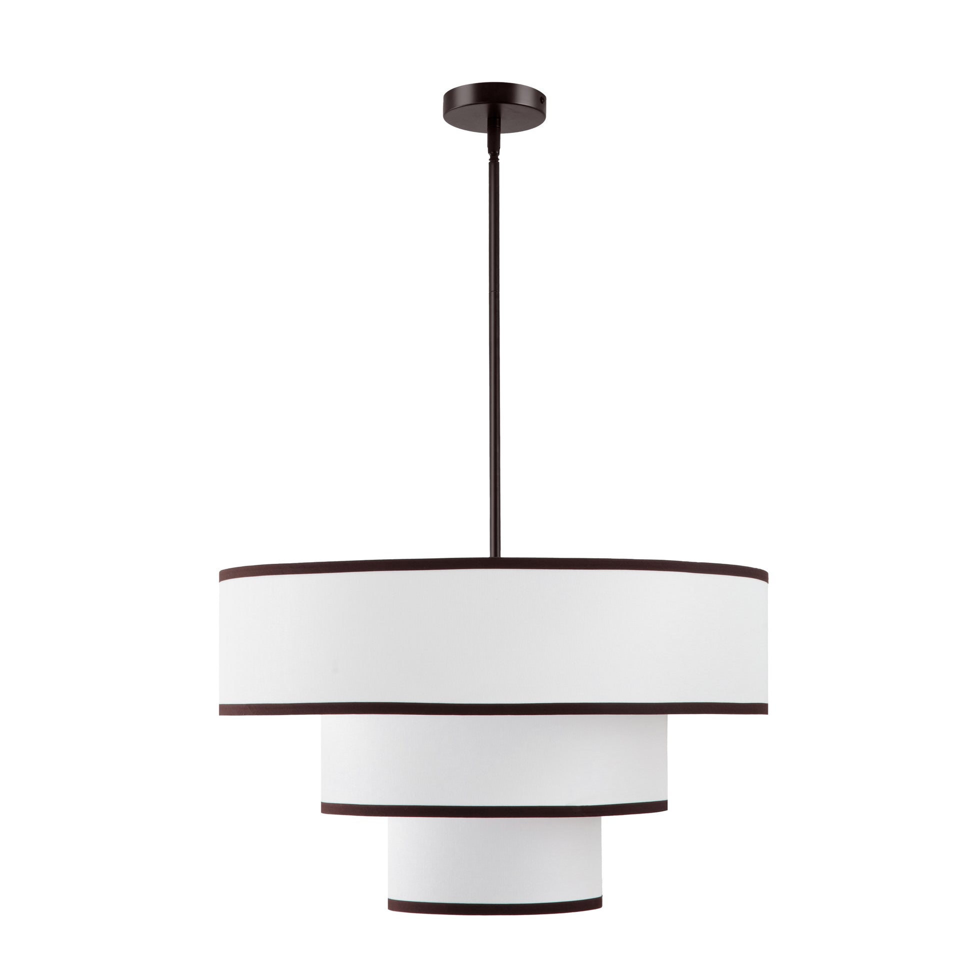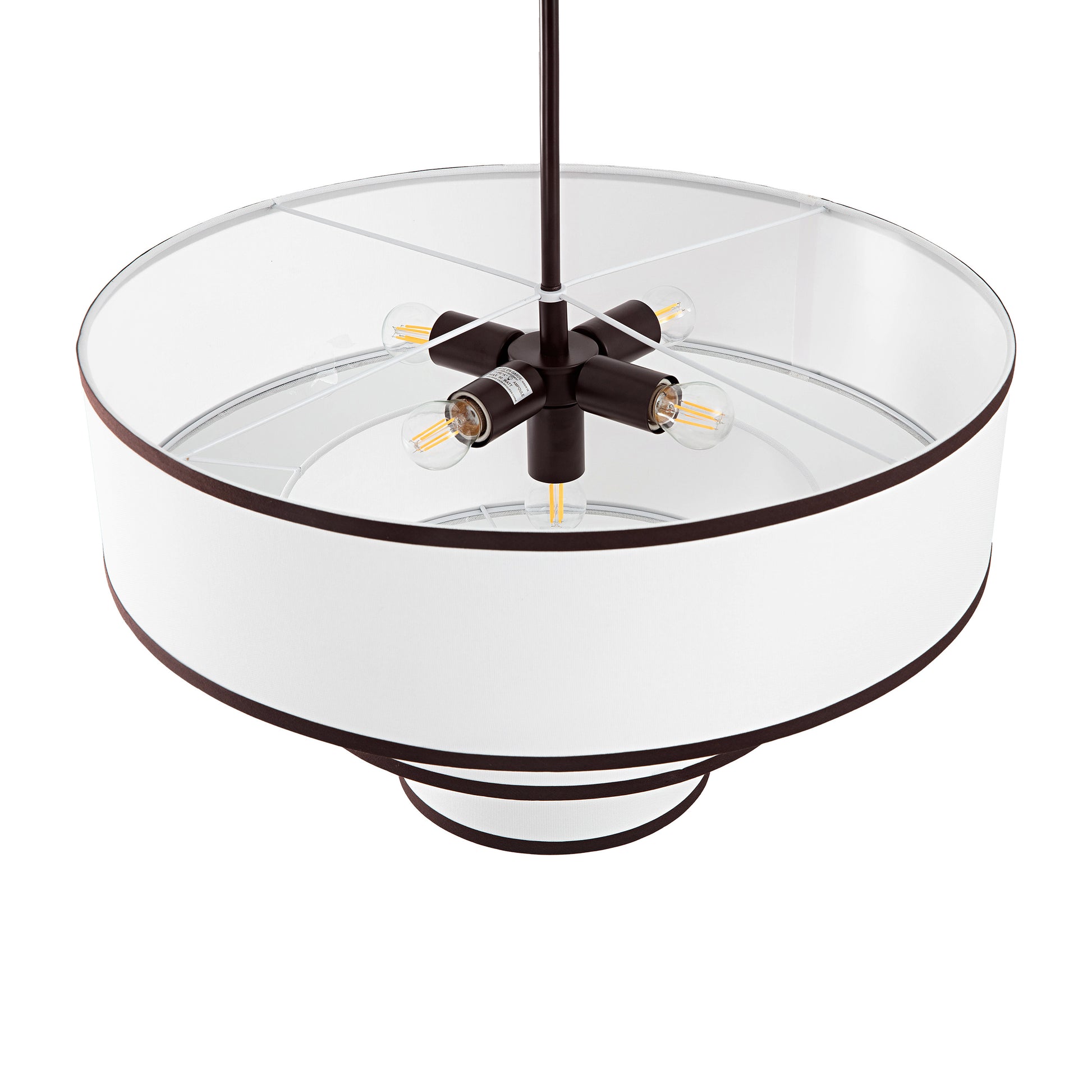 Bring modern sophistication to your space with this 24" Modern Chandelier featuring a tiered drum white linen shade, 5 lights, and an oil rubbed bronze fixture. The soft diffuser casts a warm, inviting glow, while the black trim adds sleek, contemporary detail—perfect for dining rooms, kitchens, or living spaces.