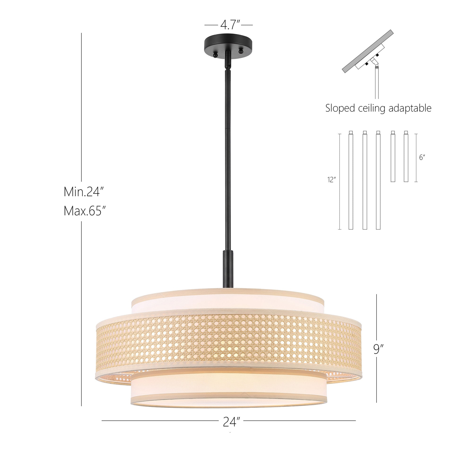 Bring modern elegance and natural texture to your space with this 24" Modern Chandelier featuring a woven rattan shade, 5 lights, and a sleek black fixture. The bottom diffuser casts a soft, warm glow, perfect for dining rooms, kitchens, or living areas, while the intricate open-weave design adds sophisticated detail and ambiance.