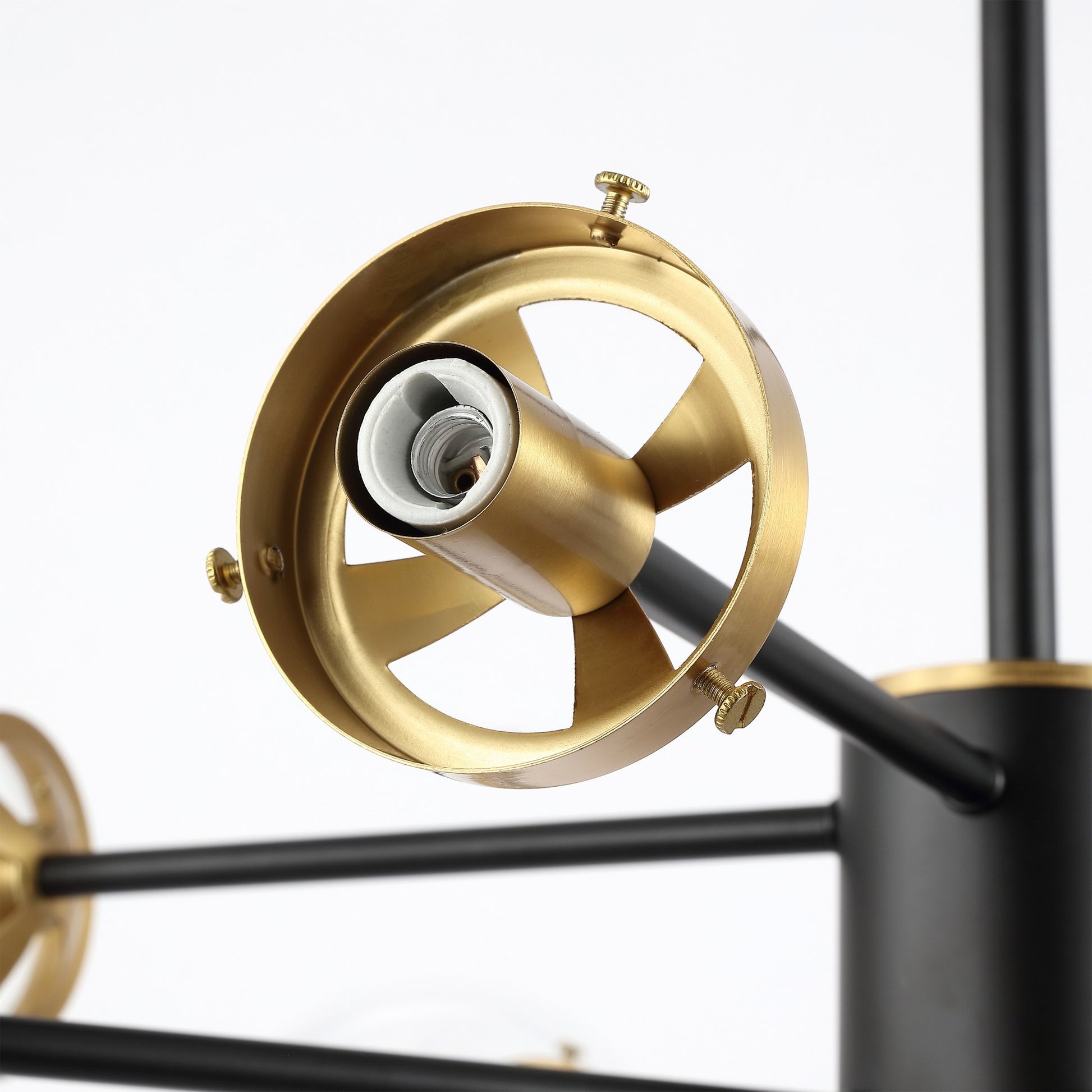 This black and brass sputnik chandelier blends modern elegance with mid-century style, delivering radiant light and sculptural design to any room.