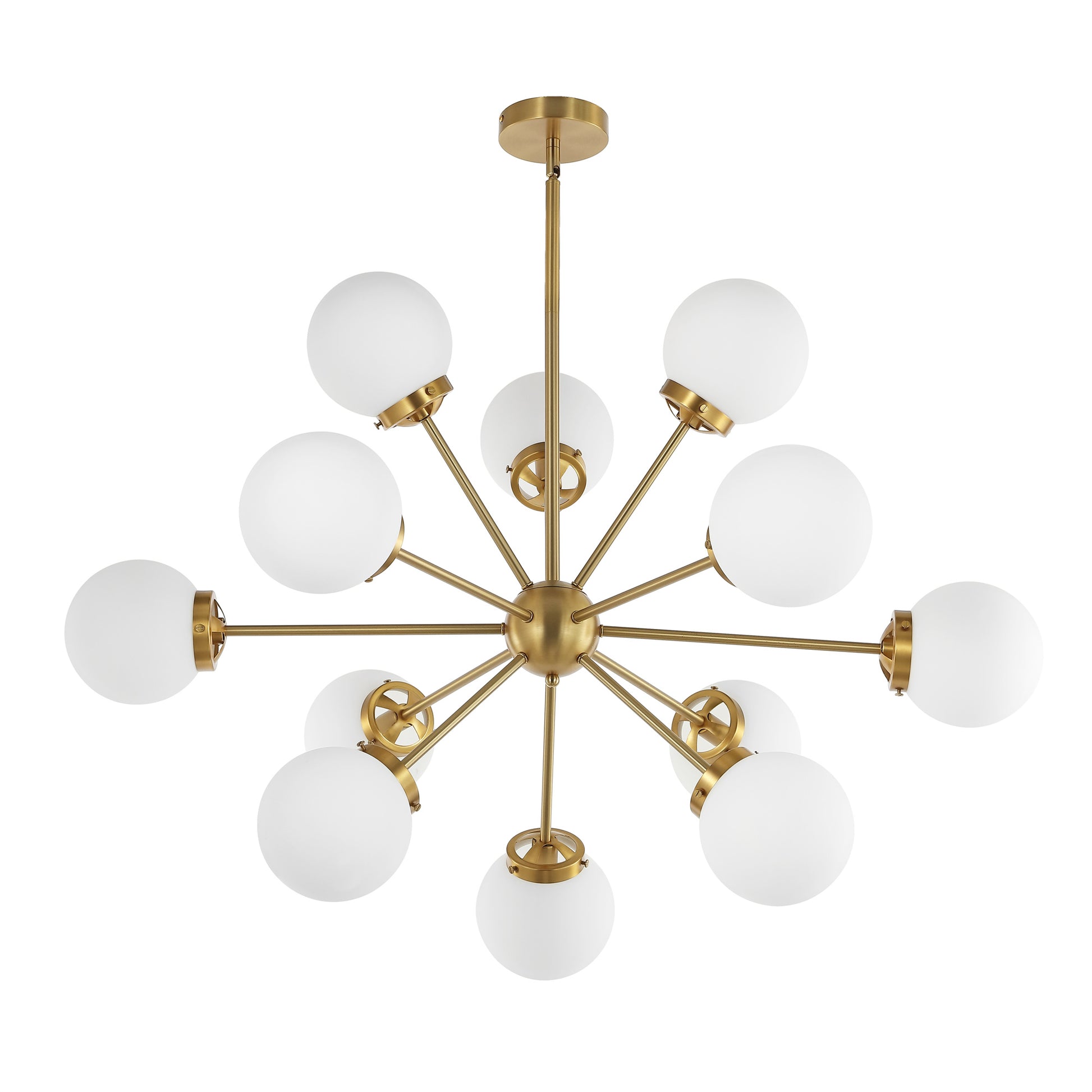 Modern Chandelier Sputnik Brass 12-Light Opal Glass 39"