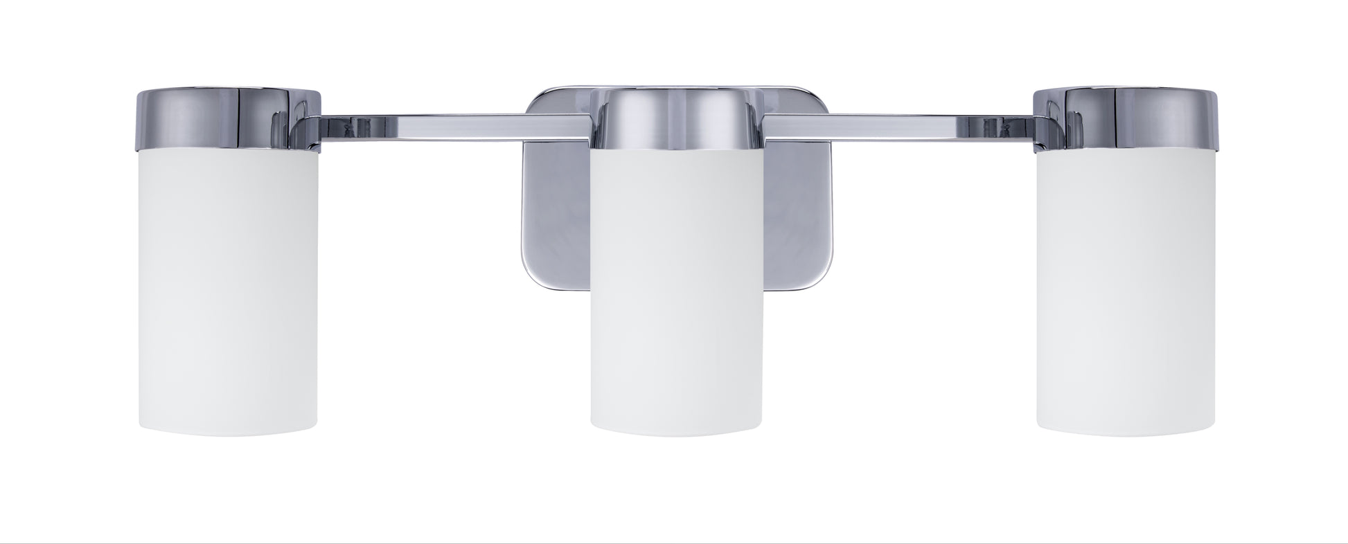 Stainless Steel / Silver 3-light vanity light brings a modern look above your mirror in the main bathroom or guest bath. It's crafted from stainless steel in a beautiful finish that pairs well with everything. The rectangular backplate connects to one sleek arm that can easily be mounted up or down thanks to its reversible feature. Three clear drum-shaped glass shades accommodate one medium-base bulb up to 60W, which is not included. Best of all, this vanity light is compatible with a dimmer switch (not included), so you can adjust the lighting from morning to night.